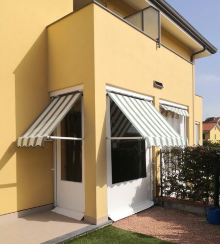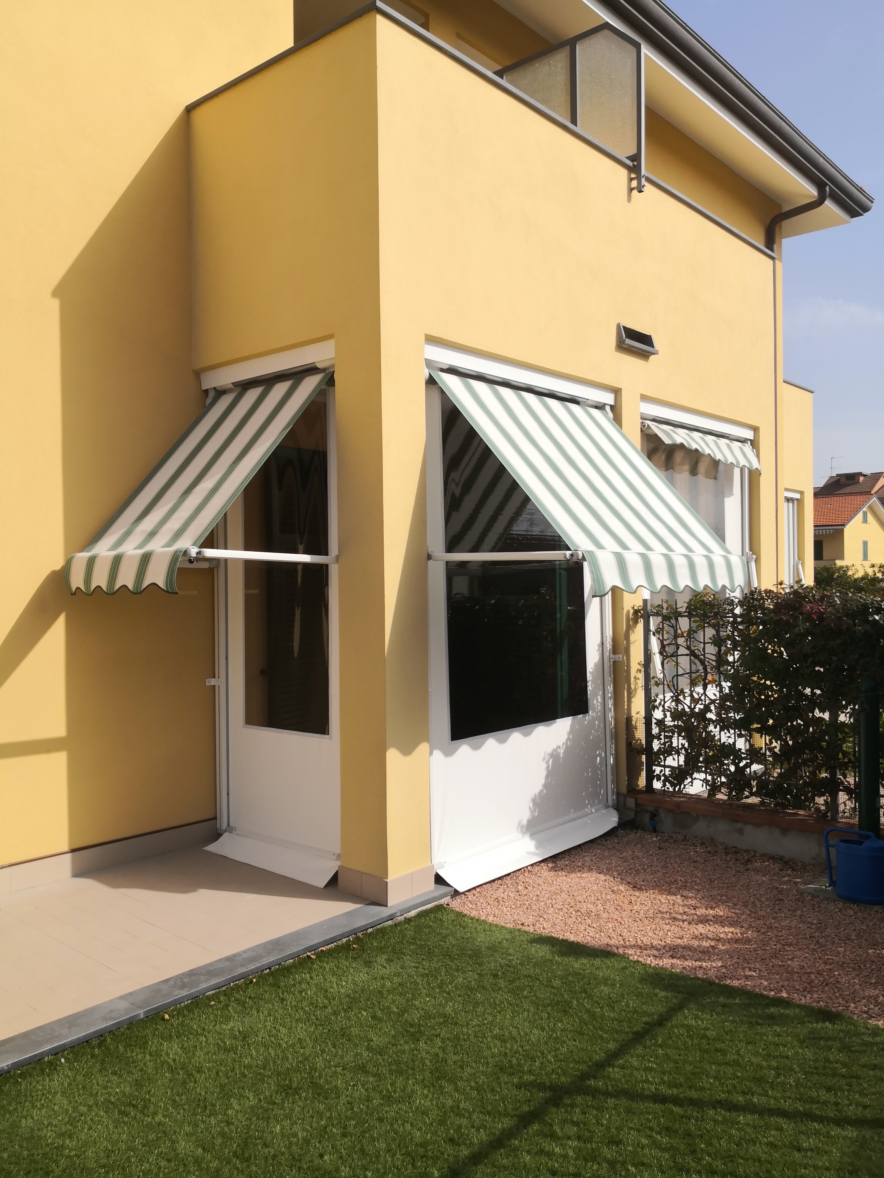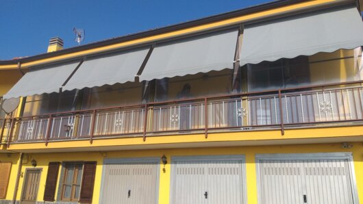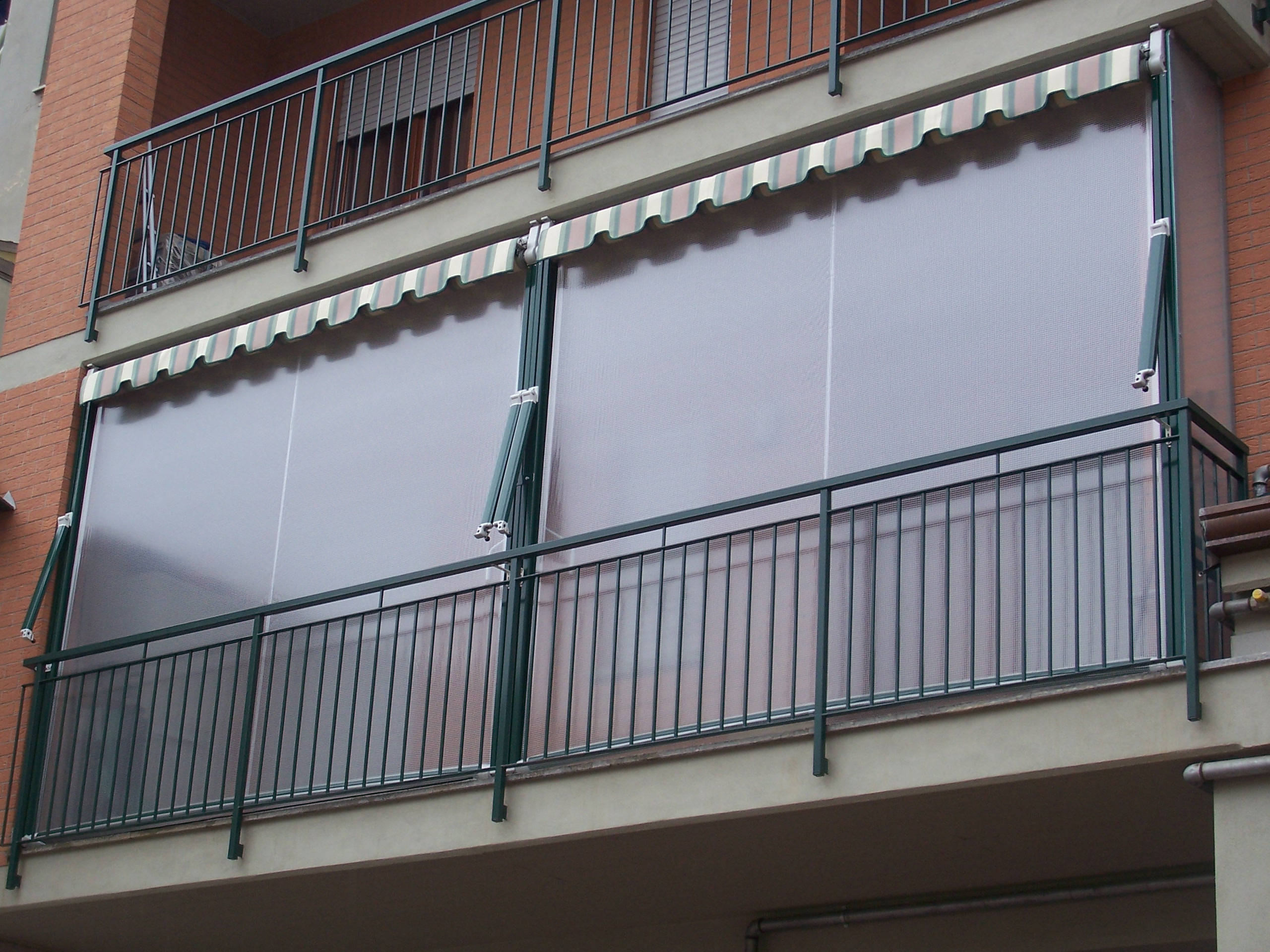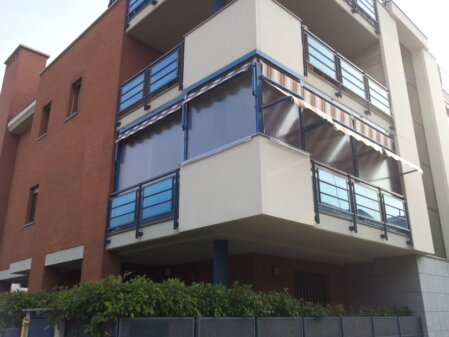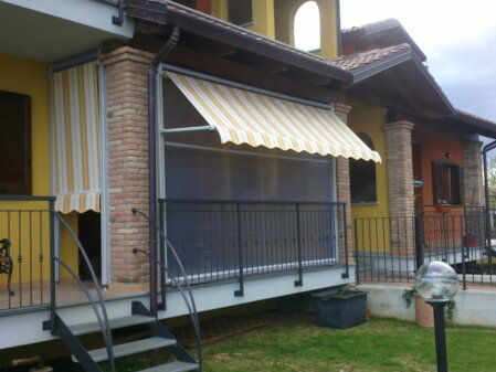 Composta da due rulli superiori indipendenti installati su guide verticali, garantisce la giusta temperatura, fresca d’estate, con l’apertura del tessuto estivo mediante bracci esterni che ruotano di 180° e chiusura del balcone d’inverno con telo in P.V.C. retinato trasparente che scorre nelle guide. Solida e robusta garantita contro le intemperie e, mediante la barra frangivento interna e spazzolino fermatelo, una barriera contro il vento.